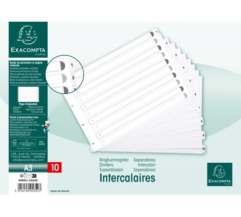 INTERCALAIRES IMPRIMÉS À TOUCHES PLASTIFIÉES - 10 TOUCHES 1 À 10 - A3 - BLANC