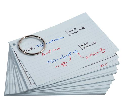 De beste bondgenoot om leerstof te herhalen! Flashcards zijn geheugenkaarten die samen worden gehouden door middel van een ring die kan worden verwijderd en teruggeplaatst, zeer gemakkelijk in gebruik. Op de kaarten kunt u beknopte informatie groeperen: een stukje informatie op de voorzijde, daaraan gekoppelde informatie op de achterzijde, vragen / antwoorden ... om leerstof eenvoudig en efficiënt te herhalen.