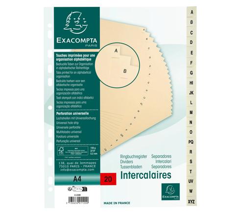 INTERCALAIRES IMPRIMÉS CARTE PEAU 155G 20 POSITIONS DE A À Z - A4 - IVOIRE