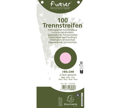PAQUET 100 FICHES INTERCALAIRES TRAPÉZOÏDALES UNIES PERFORÉES FOREVER - 105X240MM - ROSE