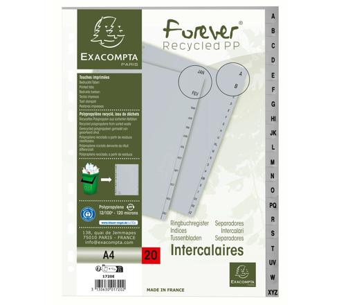 INTERCALAIRES IMPRIMÉS ALPHABÉTIQUES PP RECYCLÉ - AZ 20 POSITIONS - A4 - GRIS
