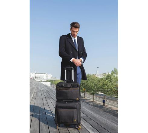 Dankzij een lus aan de achterkant kan de tas langs een telescopisch kofferhandvat worden geschoven.