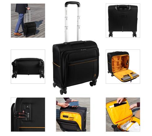 Grote tas met ritssluiting vooraan met talrijke open of gelsoten vakken voor tablet, telefoon, schrijfgerief. Deze Pilot case is handbagage bij de meeste luchtvaartmaatschappijen.