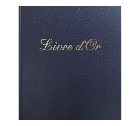 Elk gastenboek is bekleed met een gestructureerde omslag die lijkt op krokodillenleer. De cover is verfraaid met een delicate gouden opdruk en de pagina's met goudsnede laten het album oplichten.