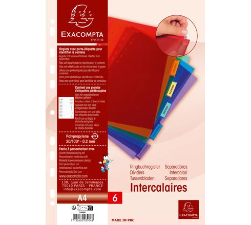 TABBLADEN IN DOORZICHTIGE PP MET NEUTRALE TABS IN ETIKETHOUDER - 6 TABS - A4 - GEASSORTEERD