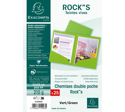 PAQUET DE 25 CHEMISES DOUBLE POCHE ROCK''S 210 - DOUBLE A4 OU A3 - 24X32CM - VERT