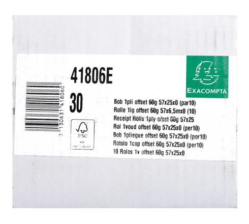 ROLLEN VOOR REKENMACHINES 57X25X0X6,5 - 1 LAAG OFFSET EXTRA WIT 60G/M2. - WIT