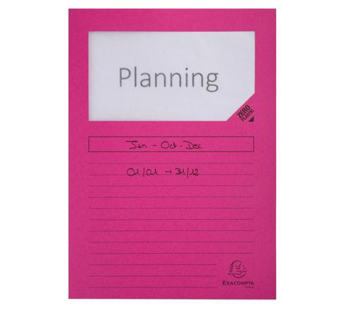 Dankzij het venster zie je onmiddellijk de inhoud van het dossier.De gedrukte lijnen op de omslag zijn beschrijfbaar en vereenvoudigen de identificatie van het dossier