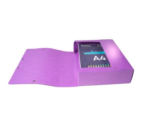 De klasseerdoos is met rivetten verstevigd voor extra duurzaamheid en het perfecte behoud van de kleppen.De elastieken zorgen voor de sluiting en de vertrouwelijkheid van de inhoud, terwijl het etiket aan de achterkant het mogelijk maakt om de box te identificeren met een viltstift.