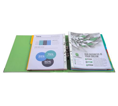 A4 maxi formaat voor een klassement van geperforeerde tassen en tabbladen die niet uit de rand steken.