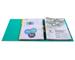 Een ordner met metalen grijpgat, sleuven en randbescherming. Binnen -en buitenzijde met PP overtrokken.