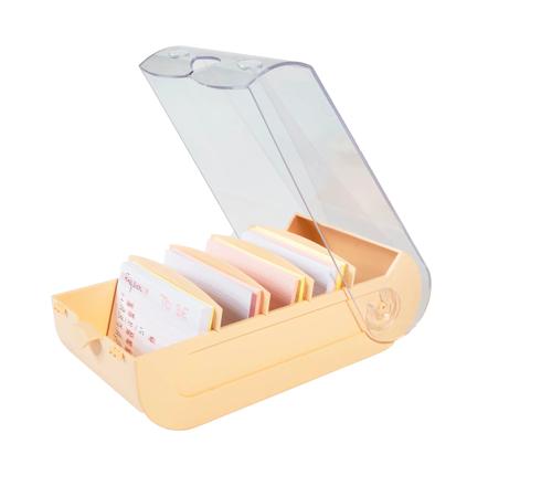 Un plus : La forme originale en Bunny avec deux grandes oreilles sur le couvercle et le nez au milieu est surtout pratique pour maintenir la boite fermée. La bunny box peut donc être transportée sans risque. Le couvercle coulissant disparait sous le fichier et n'est jamais perdu ni cassé.