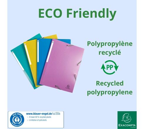 FOREVER YOUNG RECYCLED PP ELASTICATED 3 FLAP FOLDER A4 - ASSORTED COLOURS