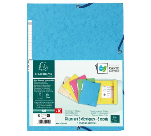 ELASTOMAP 3 KLEPPEN IN GLANSKARTON 400G/M2 - A4 - GEASSORTEERDE PASTEL KLEUREN