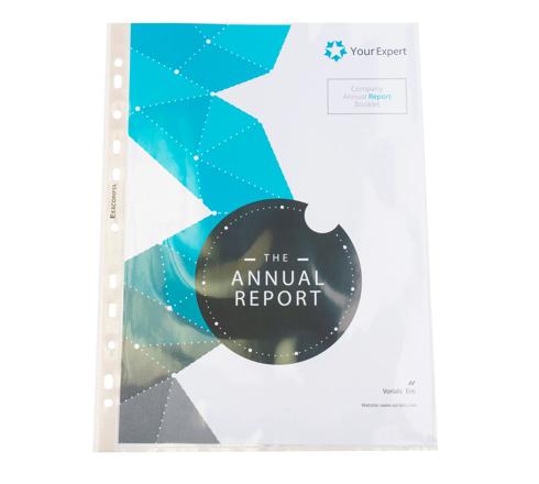 Pak van 100 kleurloze geperforeerde showtassen van hoge kwaliteit - glashelder - Opening aan de bovenkant voor eenvoudig toevoegen en verwijderen van documenten.