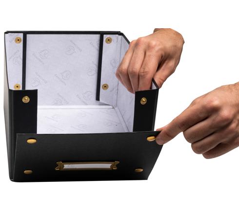 Om ecologische redenen worden de dozen vlak geleverd. Ze zijn eenvoudig te monteren dankzij de drukknopen.