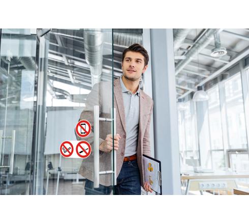 Ce panneau conforme aux normes ISO 7010 permettra par exemple de s'assurer du respect du règlement intérieur comme l'interdiction de fumer dans les locaux.