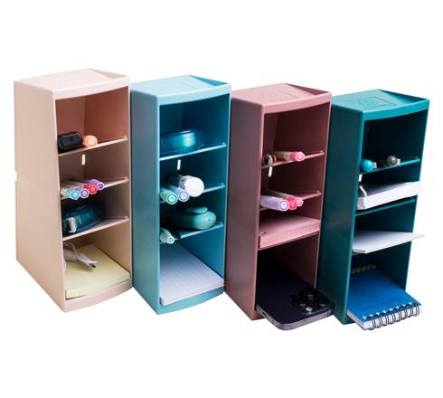 Dankzij zijn compacte vorm van 23 cm hoog, 8 cm breed en 11 cm diep past hij op de hoek van elk bureau of op elk schap. De Multi tower is verkrijgbaar in 4 kleuren die passen in elke kantooromgeving of thuiskantoor. De 4 vakken, van 8 tot 11 cm diep, kunnen dienen als pennenhouder, of als opbergbakje voor markers, schaar, post-its, telefoon of andere kleine benodigdheden.