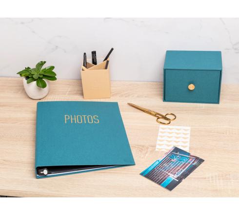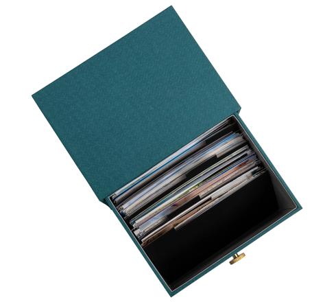 Een ingenieuze design doos voor het opbergen en ordenen van steekkaarten, notities of foto's. Een doos voorzien van een handige lade van 15,8x12 cm en 4 kartonnen tabbladen om de inhoud in vakken te verdelen.