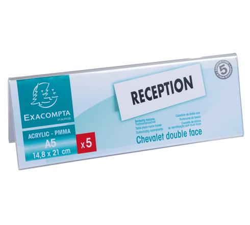 PAK VAN 5 NAAMHOUDERS 210X75MM (A5 GEPLOOID) HORIZONTAAL OFFICE KRISTALHELDER - TRANSPARANT