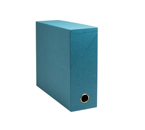 De transportdoos met rug van 90mm is onmisbaar in een thuiskantoor of voor het archiveren van documenten in een bedrijf. Met zijn mooie en geraffineerde afwerking in papier, en goudkleurig grijpoog verdient deze mooie doos zijn plek in iedere kast van elk professioneel kantoor of thuiskantoor.