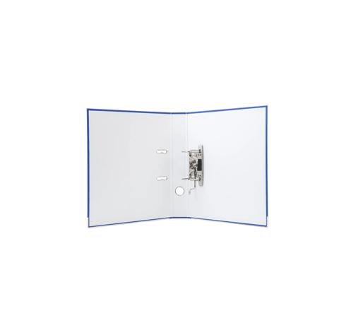 Metalen grijpgat. Metalen versteviging onderaan de ordner om vroegtijdige slijtage bij verticale opberging te voorkomen.
