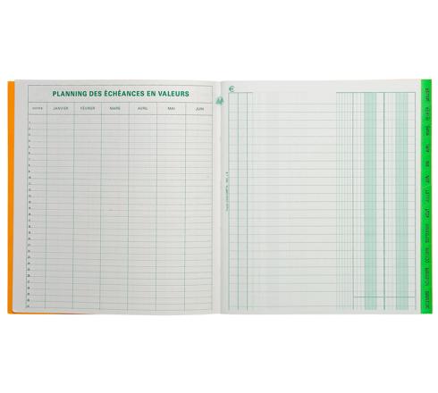 Het vervaldagboek klanten geeft op ieder ogenblik de actuele toestand van de openstaande facturen of debiteuren. Actueel betekent in deze context: geboekte facturen t.o.v. geboekte betalingen of deelbetalingen.Dit vervaldagboek heeft 12 tabs, één voor elke maand waar elke te vervallen factuur genoteerd staat. Op het einde en begin van het register een planning 31 lijnen, overzicht voor iedere dag van de maand.