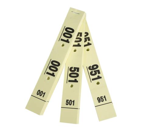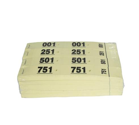 CARNET DE 50 TICKETS VESTIAIRES NUMÉROTÉS DE 3 VOLETS (DONT 2 VOLETS AVEC TROUS) - FORMAT 20X3 CM - JAUNE