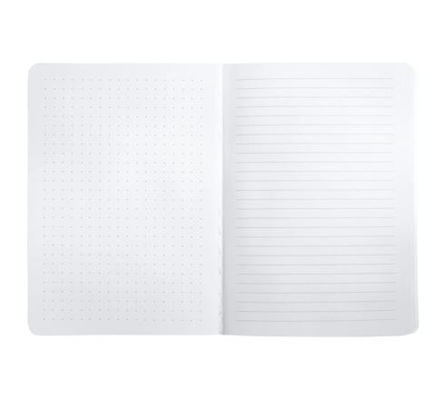 60 pages avec page de gauche lignée, page de droite pointillés.