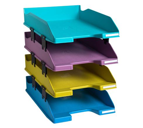 Set de 4 corbeilles à courrier pour documents au format A4+. Ces corbeilles à courrier sont solides et stables. Elles sont superposables à la verticale ou en escalier et est modulable à souhait, compatible avec de nombreux modèles existants.