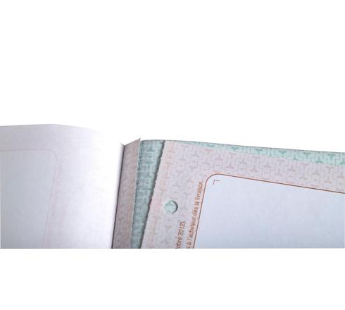 Couverture vernie - les 1er et 2ème feuillets sont micro perforés et se détachent facilement, le 3ème feuillet reste dans le carnet
