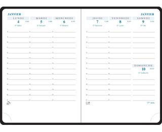 La recharge de votre agenda est fabriquée en France dans nos usines parisiennes. Elle est conçue dans une démarche environnementale d'amélioration continue, par des amoureux du papier depuis plus de 90 ans. Profitez d'une vue hebdomadaire claire grâce à une disposition verticale sur deux pages, offrant un aperçu complet de la semaine en un coup d'il. Plage horaire étendue du lundi au vendredi (8h à 21h) et espace libre sans horaire le samedi et dimanche.Un grand espace de notes est disponible en bas de page. Édition en français, avec une reliure brochée cousue pour une plus grande solidité.