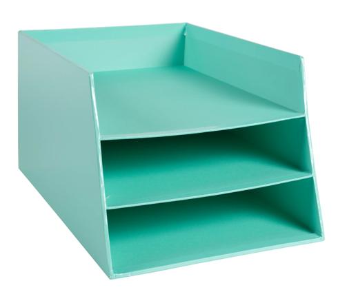 La corbeille à courrier Aquarel en carton comporte 3 niveaux pour ranger tous vos documents au format A4+ (jusqu'à 24x32cm).