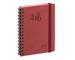 Couverture en synthétique, grain textile, spirale métal extérieure. Fermeture avec un élastique assorti. Marquage du millésime à chaud. Les + : - impression en bordeaux et gris, sur papier ivoire Clairefontaine, reconnu pour sa qualité et pour permettre une écriture douce et fluide, - tranche naturelle, - coins détachables, pour pouvoir accéder rapidement à la semaine en cours.