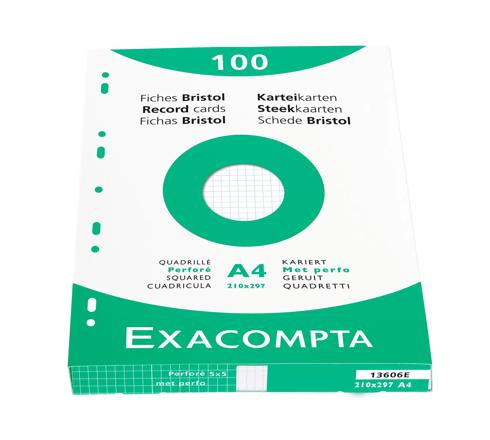 ÉTUI DE 100 FICHES - BRISTOL QUADRILLÉ 5X5 PERFORÉ 210X297MM - BLANC