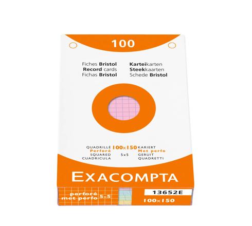 ÉTUI DE 100 FICHES - BRISTOL QUADRILLÉ 5X5 PERFORÉ 100X150MM - COULEURS ASSORTIES