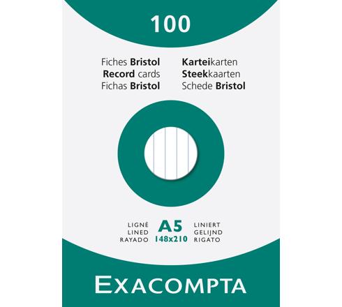 ÉTUI DE 100 FICHES - BRISTOL LIGNÉ NON PERFORÉ 148X210MM - BLANC