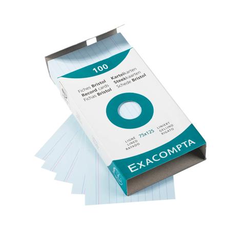 ÉTUI DE 100 FICHES - BRISTOL LIGNÉ NON PERFORÉ 75X125MM - BLEU CIEL
