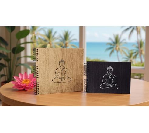 La gamme Zen est conçue pour sublimer vos souvenirs dans un écrin à l'esthétique douce et épurée. Avec sa couverture en papier imitation bois et son motif bouddha délicatement timbré, cette gamme devient le nec plus ultra de la déco.