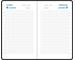 Couverture amovible en plastique. Les + : - impression en bleu sur papier blanc Clairefontaine, reconnu pour sa qualité et pour permettre une écriture douce et fluide, - tranche naturelle, - coins détachables, pour pouvoir accéder rapidement à la journée en cours.