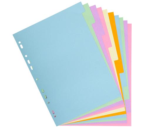INTERCALAIRES CARTE PASTEL 170G FOREVER 10 POSITIONS - A4 - COULEURS ASSORTIES