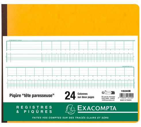 La piqûre à colonnes est un support souple et pratique pour consigner tout ce qui s'enregistre, se compte, se classe. Les tracés pré-imprimés simplifient les reports sur les pages numérotées. La tête paresseuse est une formule astucieuse pour éviter les reports des en-têtes de colonnes d'une page à l'autre. Les têtes de colonnes et les colonnes elles-mêmes restent parfaitement alignées. La consultation est ainsi aisée et rapide. Choisissez votre piqûre en fonction du nombre de relevés que vous devez faire par ligne, et donc du nombre de colonnes nécessaires.
