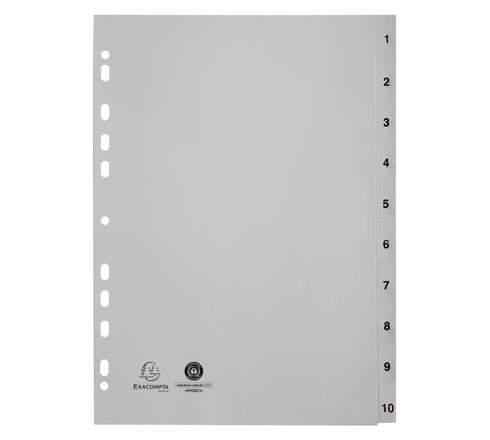 INTERCALAIRES IMPRIMÉS NUMÉRIQUES PP GRIS RECYCLÉ - 10 POSITIONS - A4 - GRIS
