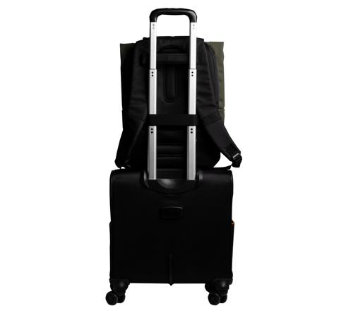 Une poche étanche à l'avant du sac permet de ranger un parapluie ou une bouteille sans risquer de mouiller le contenu du sac. Un passant au dos permet de glisser le sac à dos le long d'une poignée télescopique de valise. Avec une petite poche zippée à l'arrière pour accéder rapidement à son portefeuille, téléphone, ...