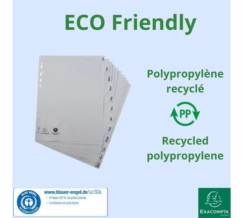 INTERCALAIRES IMPRIMÉS MENSUELS PP RECYCLÉ GRIS JANVIER-DÉCEMBRE - 12 POSITIONS - A4 - GRIS