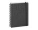 Un agenda spiralé au look classique et au toucher gomme. Agenda 1 jour par page la semaine et 2 jours par page pour le week-end. Couverture spiralée, matière grain textile au toucher gomme avec impression en creux motif chiffres, élastique de fermeture. Ouverture pratique à plat et à 360 degrés.