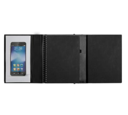 All in one, le triptyque nomade : agenda + carnet + poche pour documents ou télephone. Le compagnon idéal pour les déplacements professionnels, les réunions et les rendez-vous. Le All in one, c'est un agenda, un carnet ligné, avec feuilles détachables pour classer et conserver vos notes, une poche translucide et tactile pour votre téléphone, une poche de rangement pour documents, cartes de visites, tickets de caisse pour les notes de frais, ainsi qu'un porte-stylo (fini le stylo perdu dans le sac !). Le tout, fermé par un élastique, pour emporter vos indispensables en toute sécurité. Une couverture résistante en synthétique aspect textile, que l'on peut recharger avec un nouveau carnet et/ou un nouvel agenda (format A5) l'année suivante.