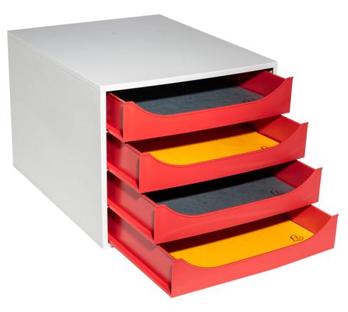 MODULE DE CLASSEMENT ECOBOX OFFICE 4 TIROIRS - ROUGE
