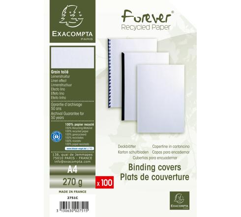 PAQUET DE 100 COUVERTURES GRAIN TOILÉ POUR RELIURE A4 - BLANC