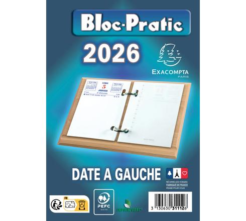 BLOC-PRATIC DATE À GAUCHE 8,2 X 12 CM - 2026 - BLEU